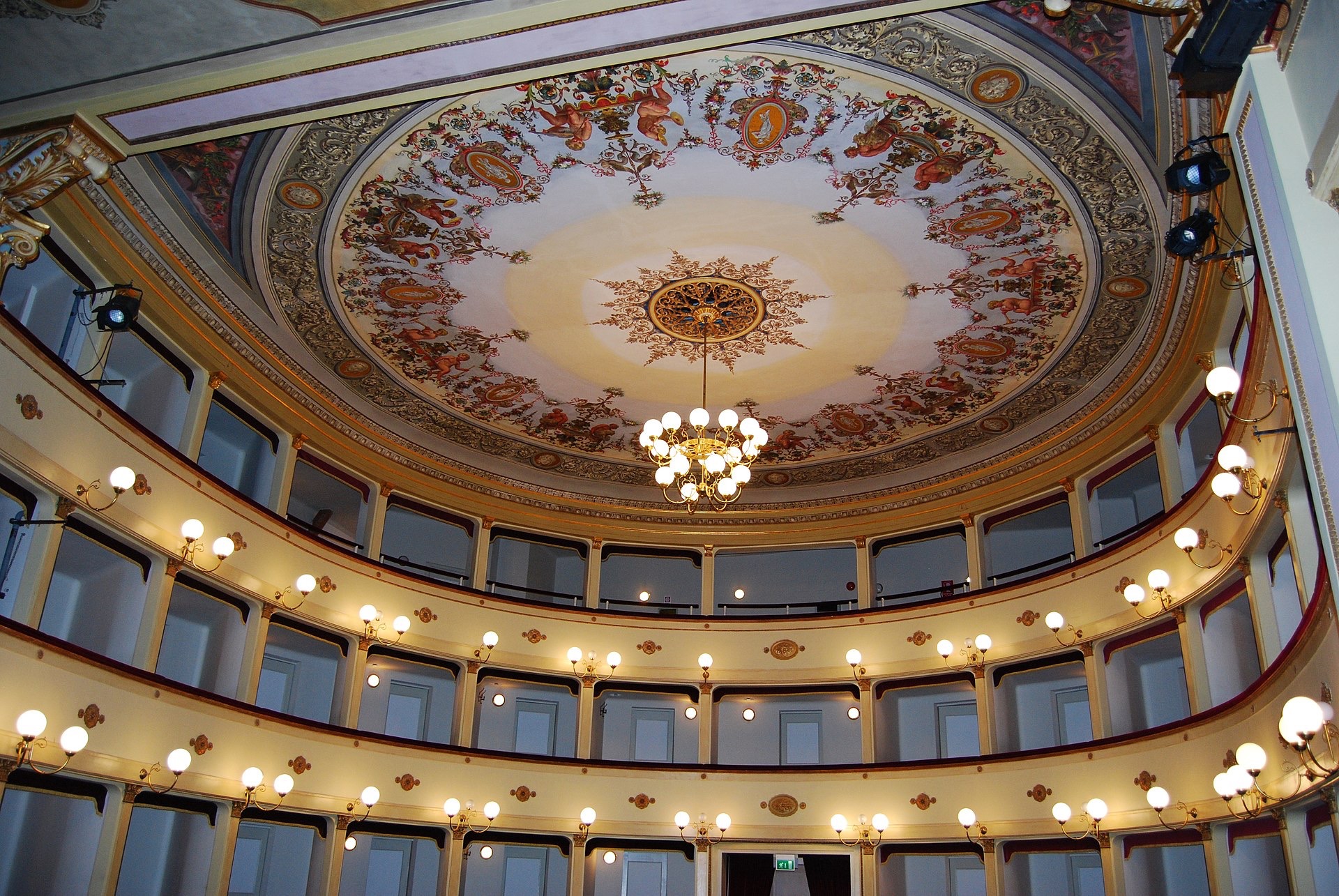 The theatre is named after Annibal Caro , an illustrious man of letters from Civitanova (1507-1566) who translated Virgil's Aeneid, and was built in 1872 by the engineer Guglielmo Prosperi from Macerata. The entrance is embellished with a beautiful Renaissance portal in white stone, finely decorated. The interior is the classic Italian theatre, that is, horseshoe-shaped with two tiers of boxes and a gallery.