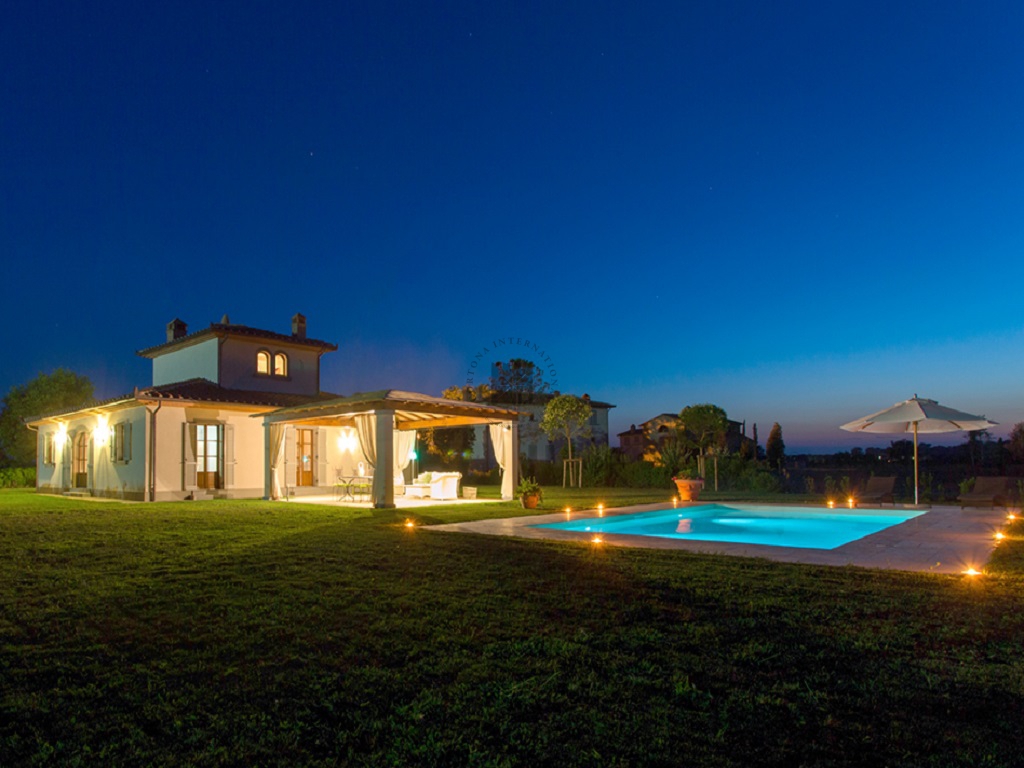 Its fine lines, its allocation of space and the abundance of natural light make it stand out from traditional Tuscan homes and its setting, with beautiful views up to the hill top town of Cortona, surrounded by classic Tuscan countryside – ideal for walking and cycling – make it a unique property.