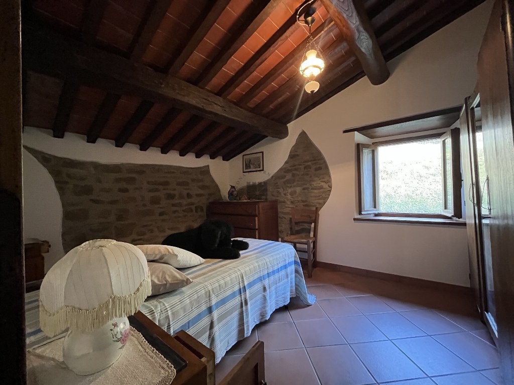 IN A DOMINANT POSITION WITH BEAUTIFUL FAR-REACHING VIEWS across wooded hillsides and valleys below, a traditional Tuscan farmhouse of 210 sqmts with a barn of 150 sqmts and 1.8 hectares (18000 sqm) of surrounding land. A pool of 72 sqm would be permissible