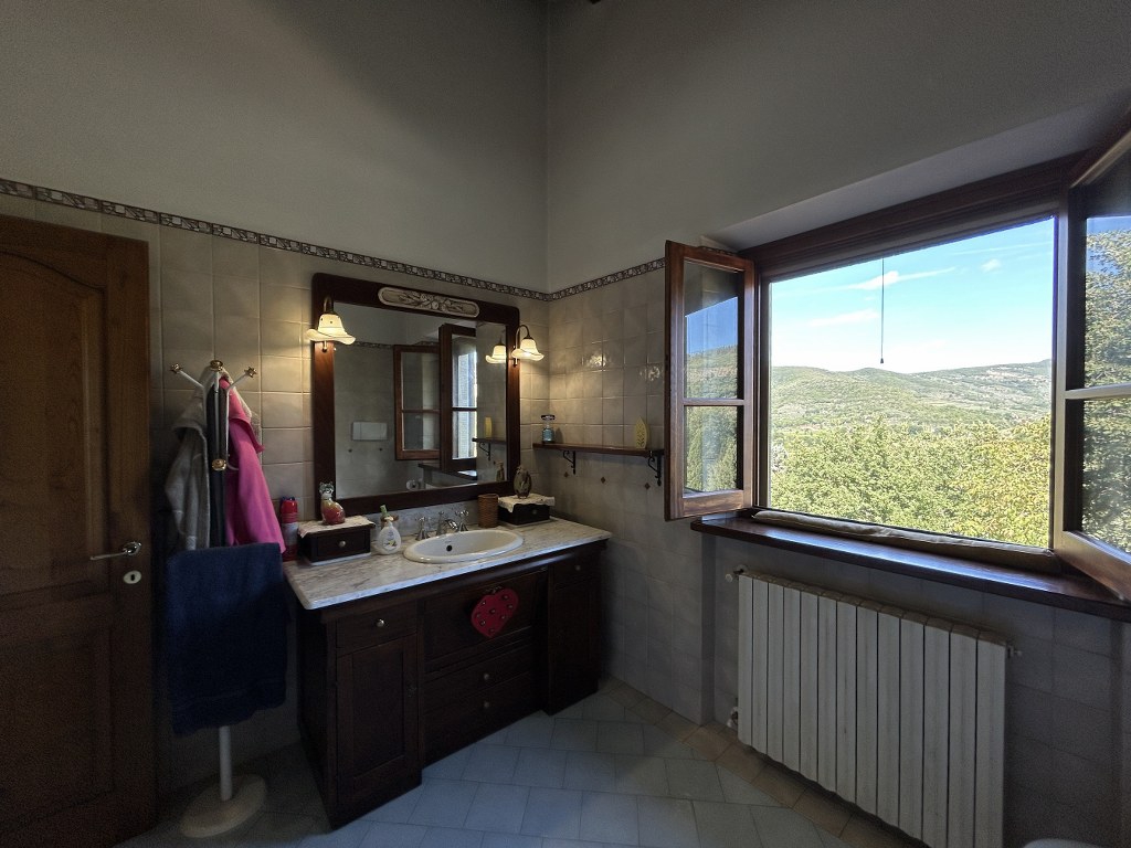 This stone farmhouse sits in a commanding position overlooking the valley, in a spot that is both private and very easy to reach. Ready to move into, it’s spread across two floorsplus useful annexes: a garage, workshops, and a self-contained studio apartment (living/kitchen area with bathroom), ideal for dinners with friends or for hosting guests.