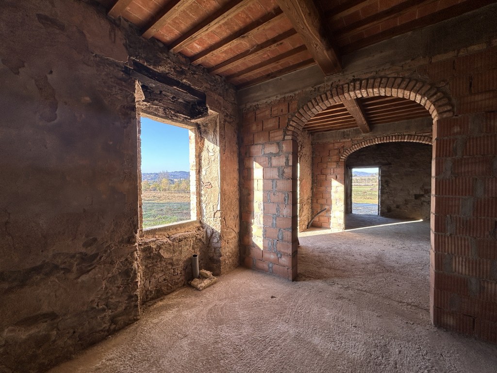 The farmhouse, restored to its raw state (consolidation work completed, with a new, yet traditional, roof and attics), can be divided as follows: