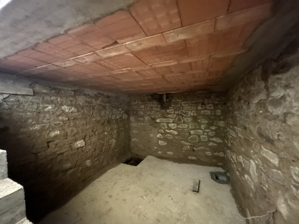The cellar, as it once was, is underground and has a stable temperature year-round, perfect for aging wines and storing cured meats and cheeses.