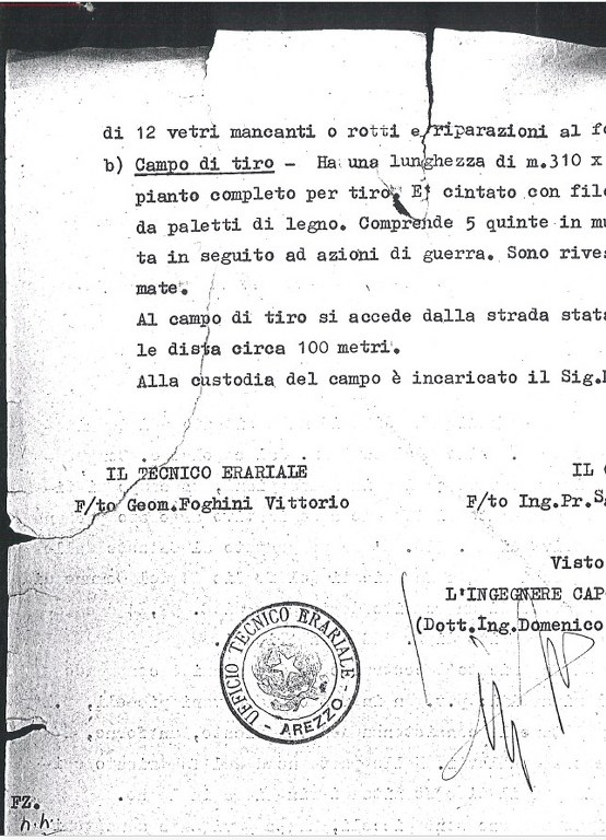 The history of the building is fascinating and prompted us to recover documents relating to the national shooting ranges, scattered throughout Italy. These types of structures originated in the 19th century, under the reign of Savoy, and were then promoted during the Fascist era. They were built where there were at least 100 shooters in the area, and the purpose was to train citizens and former soldiers for national defense.