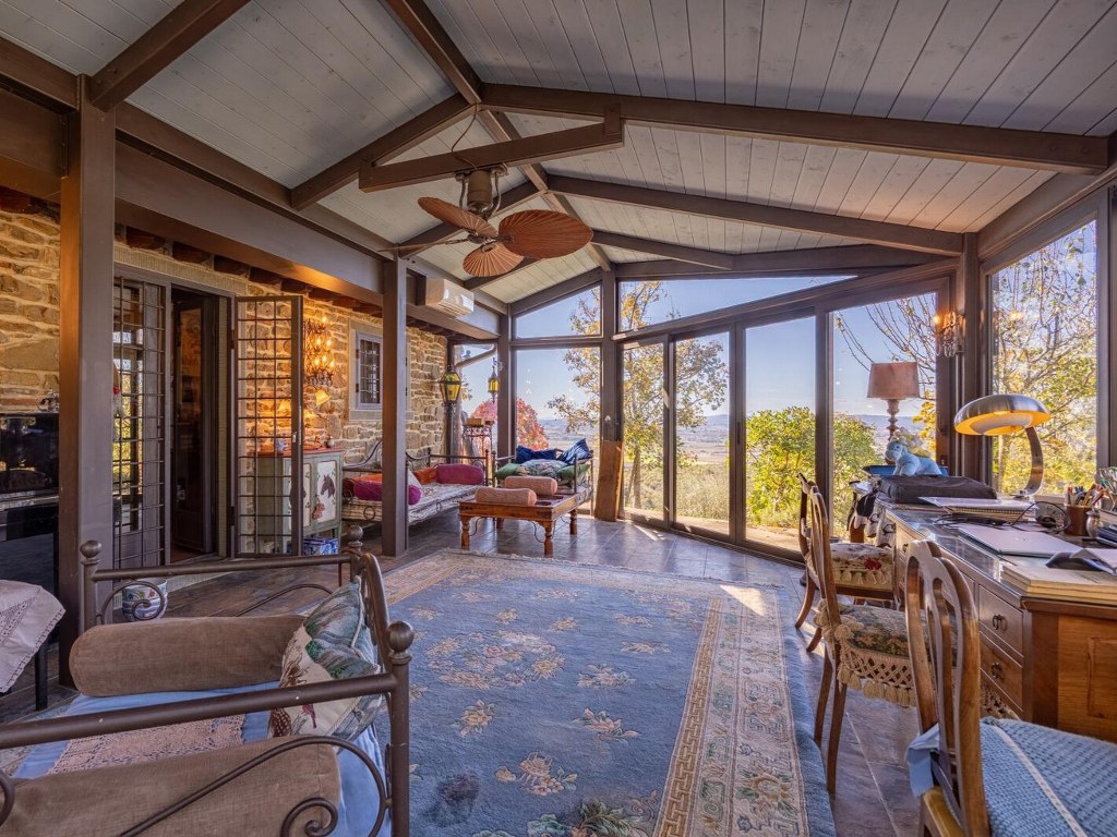 From it’s elevated position, the views are uninterrupted and vast giving this countryside home a sense of tranquility and quiet where one can relax and admire the beautiful sunsets from the covered porch or the panoramic conservatory