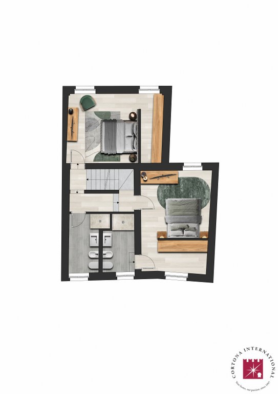 This floor is home to one of the property’s highlights: a west-facing terrace of over 25 sqm, with views towards Cortona — the perfect setting for relaxing, al fresco dining, entertaining friends, or enjoying a good book. With the addition of a veranda, the terrace can be enjoyed for at least six months of the year.